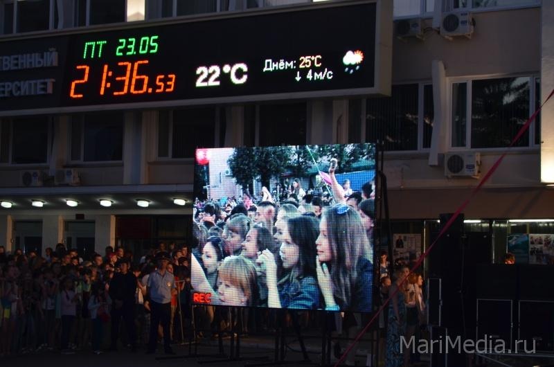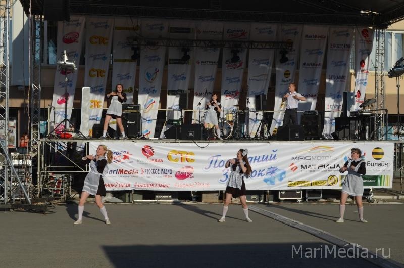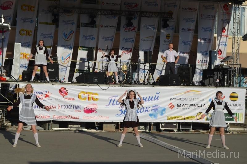 МариМедиа, 26 мая. 23 мая Йошкар-Ола отпраздновала «Последний звонок 2014». Это событие для выпускников марийской столицы организовала Группа компаний «МариМедиа». Многочисленные конкурсы и подарки от партнеров — «Билайн», «МагМоторс» и «Матрица», «Россельхозбанк» и ПГТУ — порадовали всех собравшихся в тот вечер на площади им. В. И. Ленина.