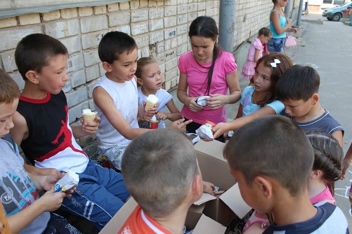 Ребята с радостью осваивали качели, горки, новое футбольное поле и мячи, подаренные предпринимателями города, а взрослые — новые скамейки. Также детей и взрослых ждал отличный сюрприз от мэрии — мороженое!