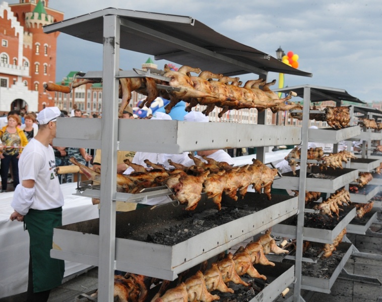 Для рекорда было изготовлено 42 специальных мангала, 336 шампуров, каждый длинной более метра. Приготовили для гриля 2014 цыплят по классическому рецепту. Для взвешивания разработали специальную конструкцию, на нее выложили всех кур и вес составил 1726 кг 400 г. Рекорд взят!!!