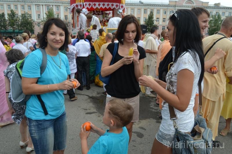 Но основные развлечения были еще впереди. После шествия колесницы с Божествами, йошкаролинцев ждали ведические сладости, шашлыки и горячие пирожки — все вегетарианское. По отзывам дегустаторов, это ничуть не испортило вкус. Например, многим понравился шашлык из панира и овощей. «Праздник был-супер! Очень красиво, ярко и вкусно!» — говорит йошкаролинка Юлиана Михеева.