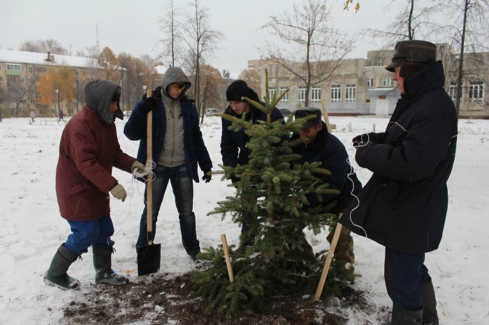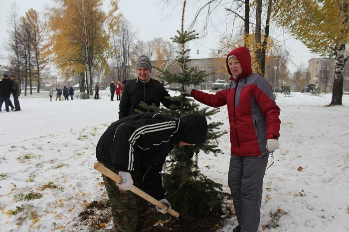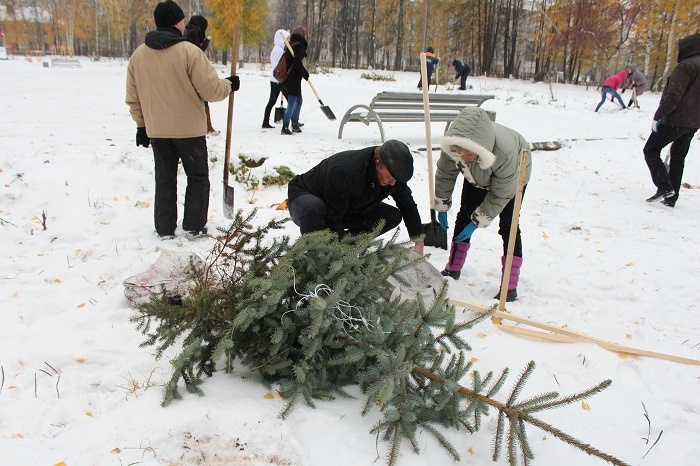 МариМедиа, 17 октября. Сегодня в 14:00 в столичном Парке Победы прошла акция по озеленению зоны отдыха. Чиновники, студенты и простые горожане откликнулись на призыв мэрии Йошкар-Олы высадить деревья в городском парке. Ни снег, ни ветер не помешали укоренить более 200 саженцев хвойных и лиственных насаждений.