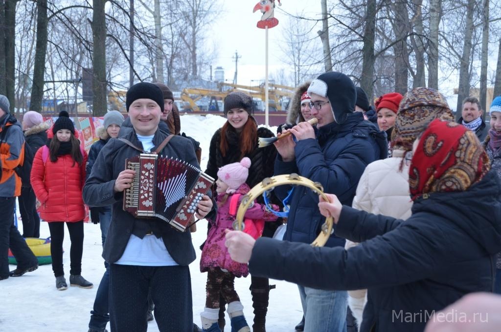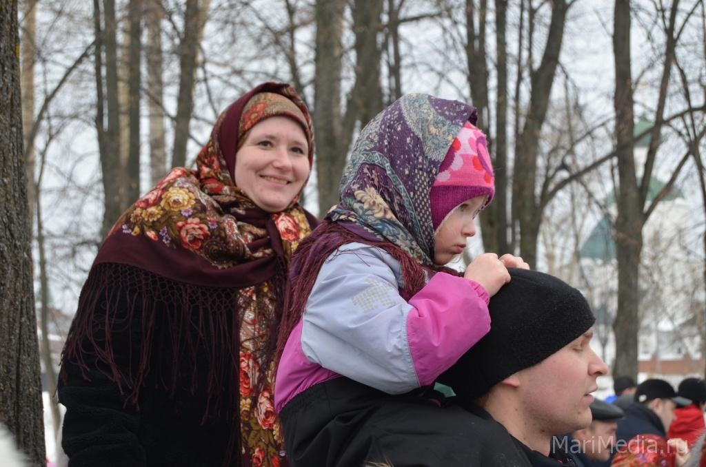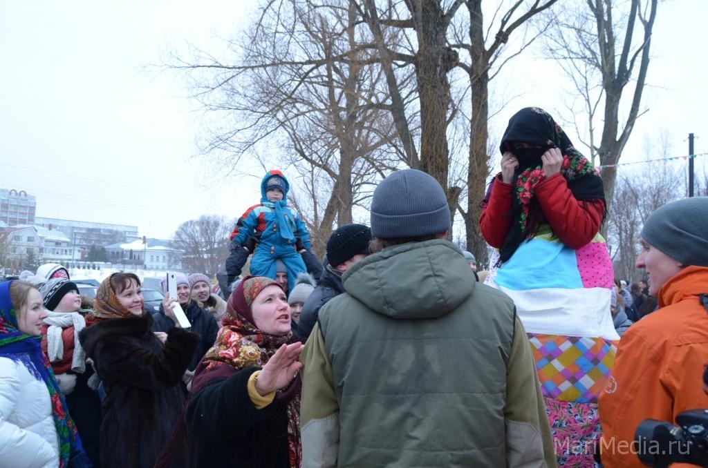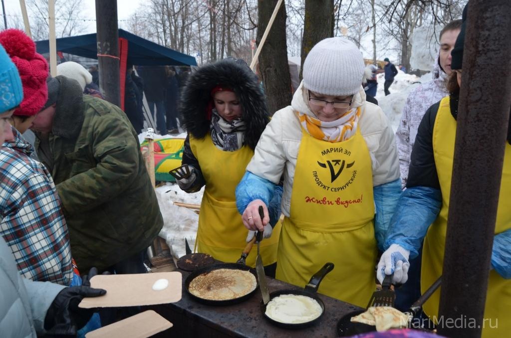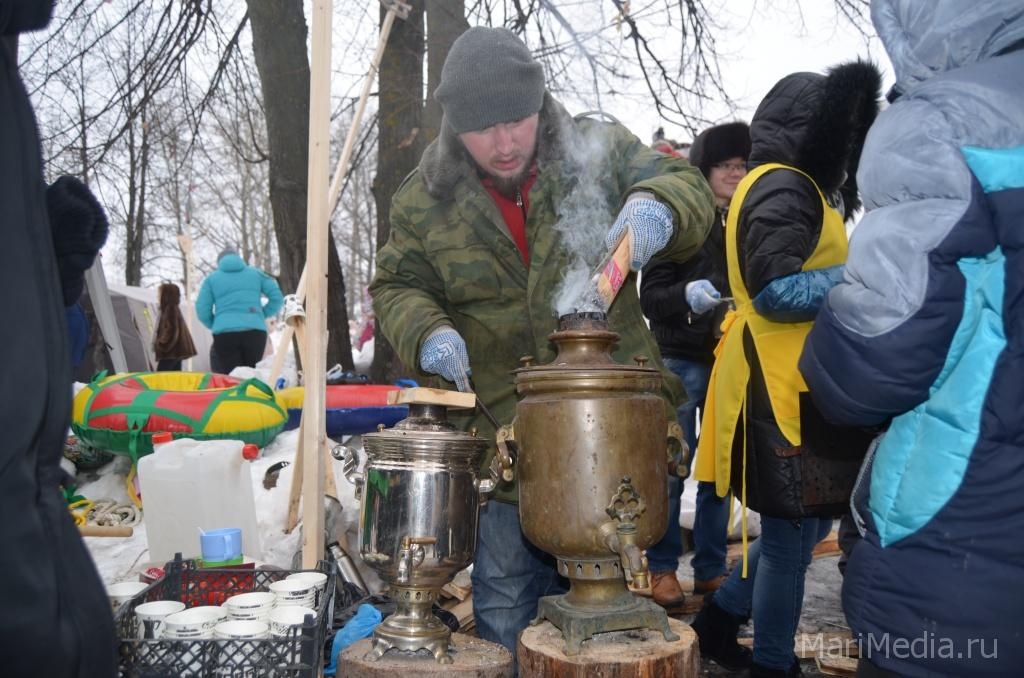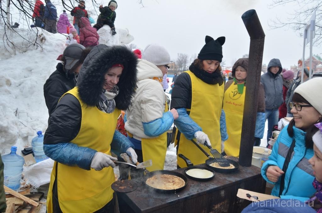 МариМедиа, 22 февраля. Дождливая погода нисколько не испугала сотни йошкаролинцев и гостей марийской столицы, которые пришли сегодня на берег Кокшаги, чтобы шумно и весело проводить зиму 2014-2015 и отпраздновать широкую масленицу.