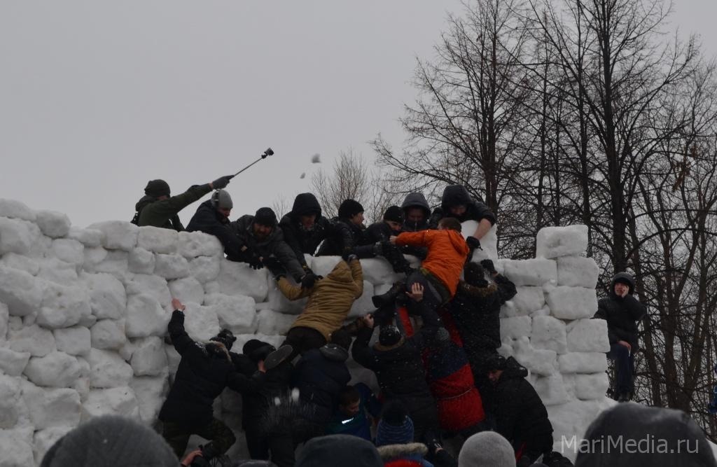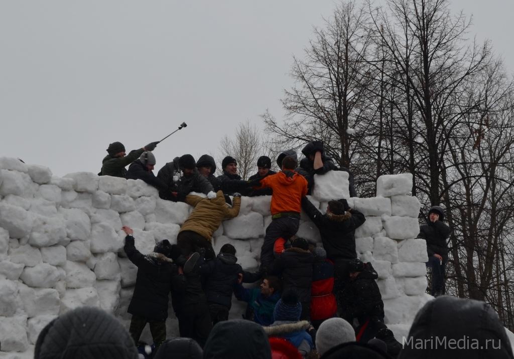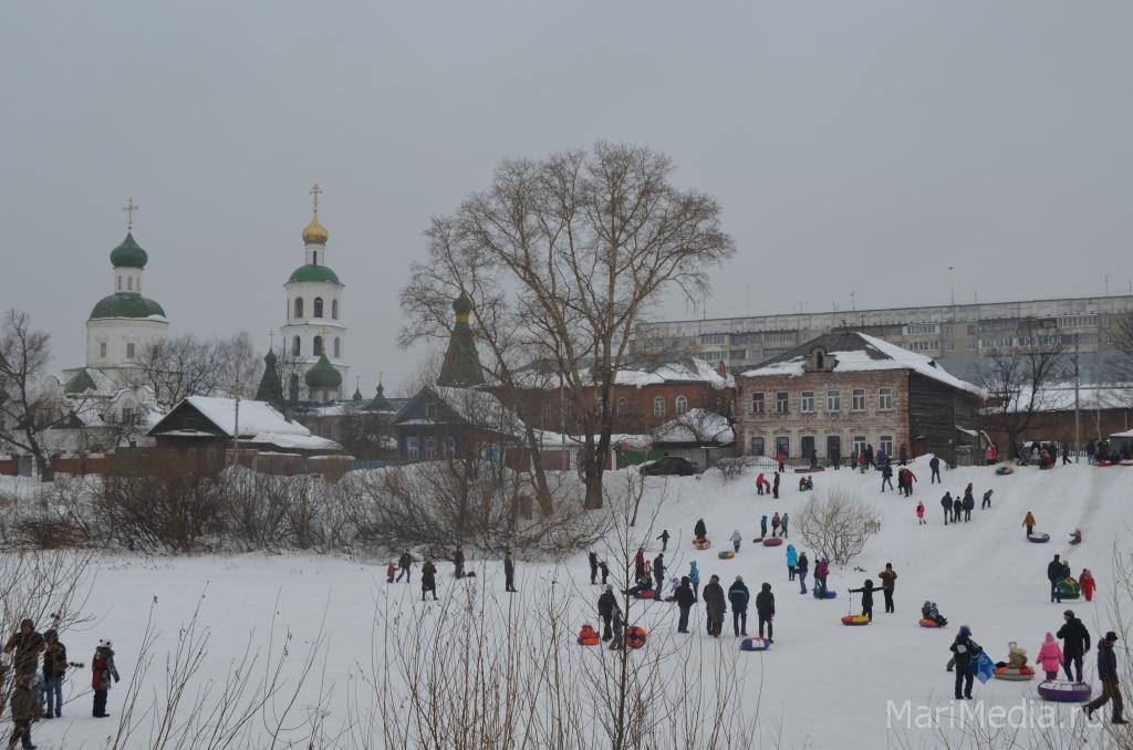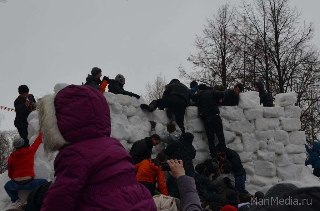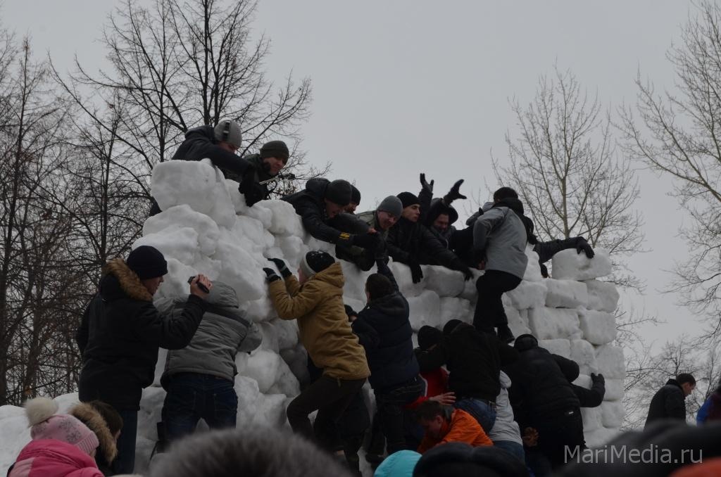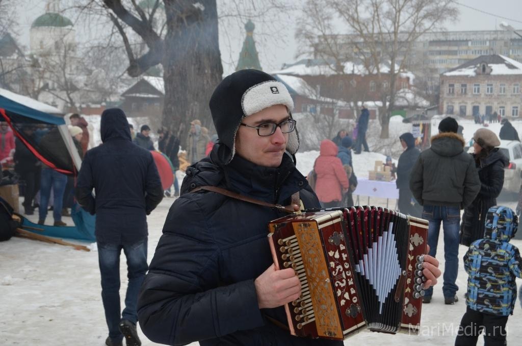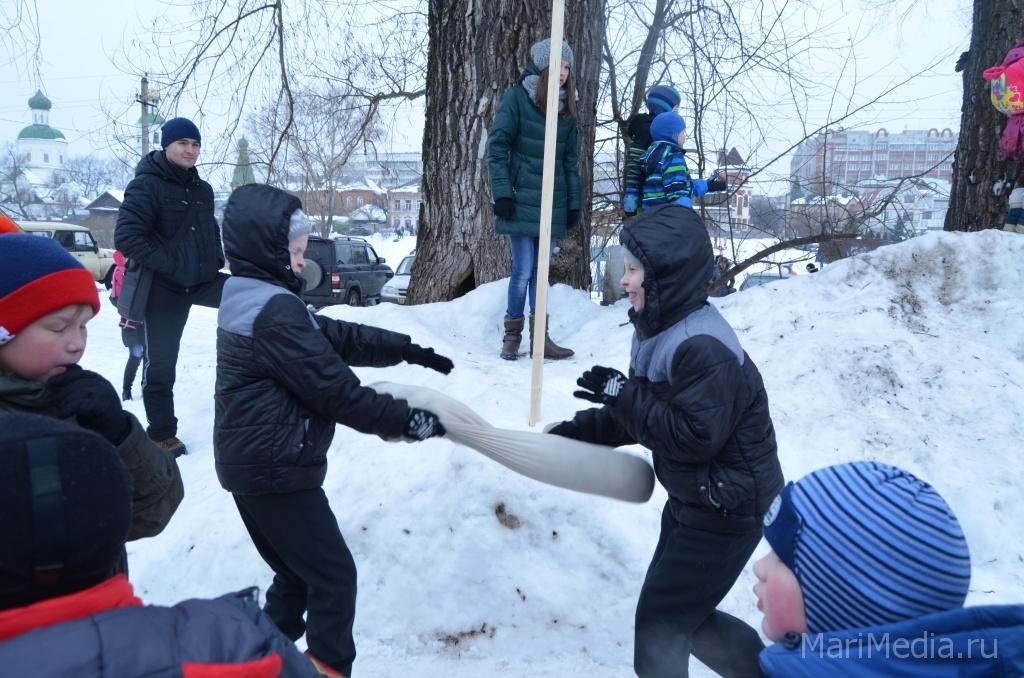 МариМедиа, 22 февраля. Дождливая погода нисколько не испугала сотни йошкаролинцев и гостей марийской столицы, которые пришли сегодня на берег Кокшаги, чтобы шумно и весело проводить зиму 2014-2015 и отпраздновать широкую масленицу.