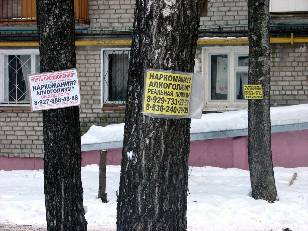 Как показывает мониторинг ситуации, главным «рекламистом» в Йошкар-Оле является тоталитарная секта, действующая под вывесками благотворительной общественной организации «Путь преодоления» (помощь наркозависимым и алкоголезависимым) и «Единой службы переездов» (грузчики, разнорабочие, уборка снега).