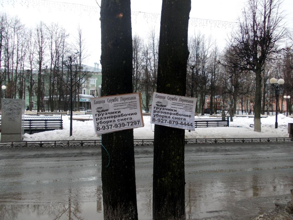 Сегодня, чтобы «полюбоваться» на обилие незаконной рекламы, достаточно пройтись по Ленинскому проспекту или улице Первомайской. Символично, что одна из картонных табличек, которыми недавно был «украшен» бульвар Победы, висит прямо напротив поста полиции.