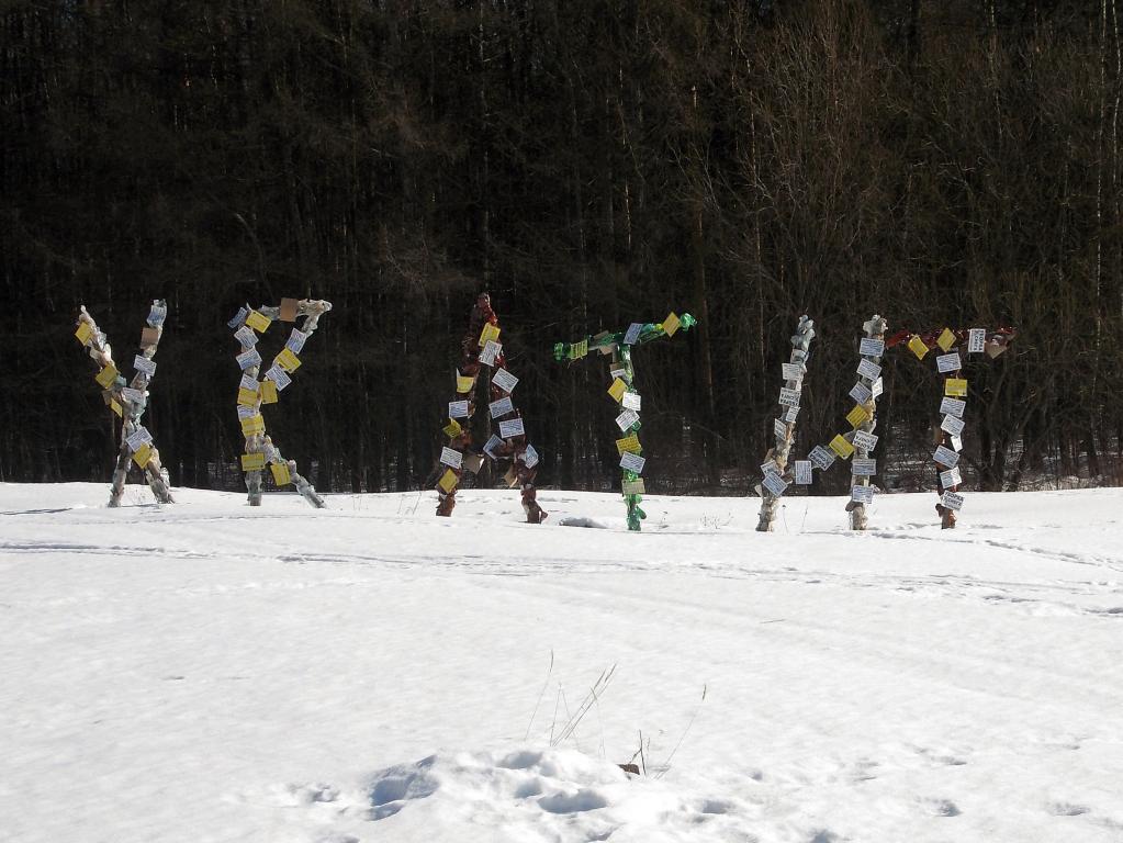 В ходе проведения акции с 8 по 10 марта с городских деревьев было снято более 100 рекламных картонных табличек, которыми затем была «украшена» инсталляция «Хватит», расположенная слева от входа в Сосновую рощу.