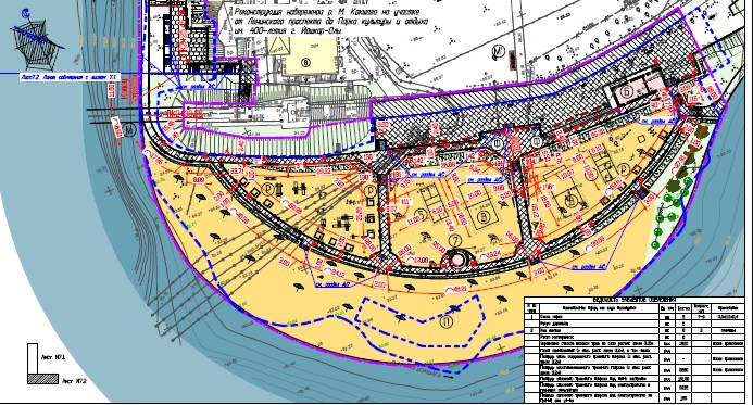 Проектом предлагается реконструкция территории пляжа с устройством тротуаров лестничных сходов, а также установка: