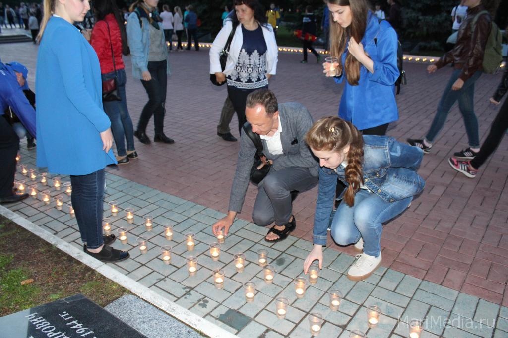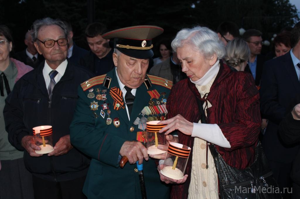 Накануне в Йошкар-Оле была зажжена «Свеча памяти». У Мемориала воинской славы йошкаролинцы и гости столицы от памятной свечи зажгли 1 418 свечей, по количеству дней Отечественной войны. В церемонии принял участие руководитель республики Александр Евстифеев.
