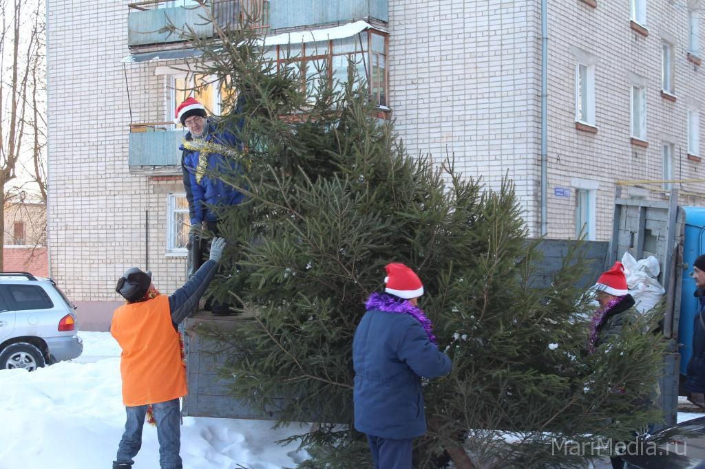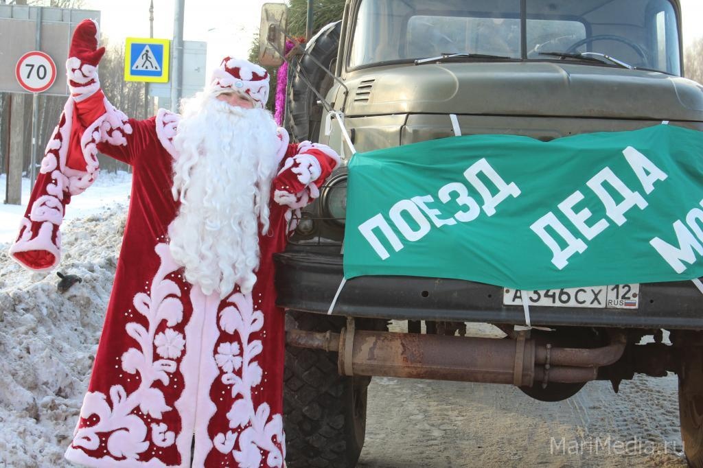 Сегодня в Йошкар-Олу пришёл «ёлочный поезд Деда Мороза». Дед Мороз передал управляющим компаниям столицы более семидесяти хвойных деревьев.