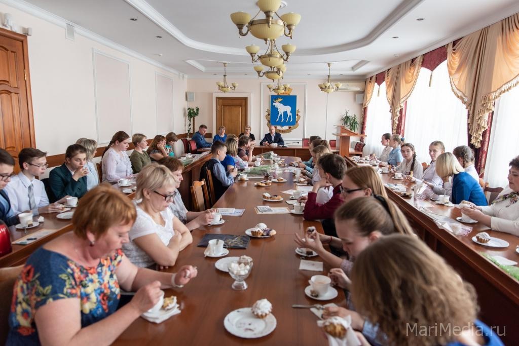 В администрации марийской столицы прошло торжественное награждение дошколят и школьников, участвовавших в краеведческих конкурсах, играх и олимпиадах. Призы победители получили из рук мэра г. Йошкар-Олы Евгения Маслова.