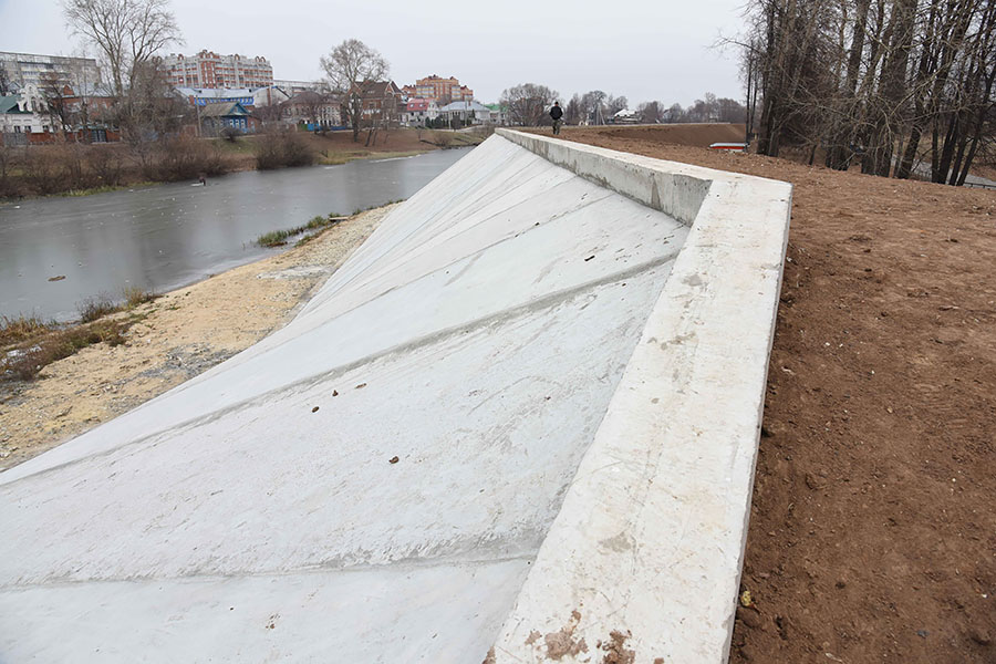 В ходе обследования объекта Глава республики высказал ряд замечаний к представителям подрядной организации первого этапа строительства дамбы. В частности, Александр Евстифеев обратил внимание на некачественное закрепление самой земляной насыпи рядом с основанием сооружения.