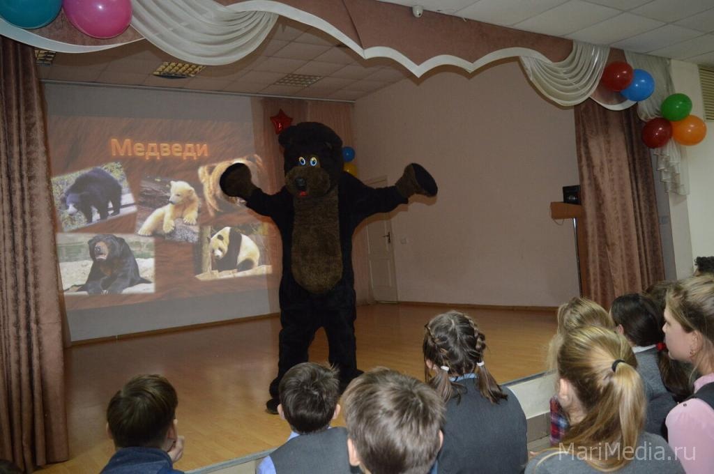 Как сообщили ИА «МариМедиа» в пресс-службе заповедника, в гости к школьникам пришёл бурый медведь. Косолапый, который живет на территории Государственного природного заповедника «Большая Кокшага», рассказал о премудростях своей заповедной жизни и своих лесных друзьях. Представители заповедника дополнили его рассказ информацией о других видах медведя.