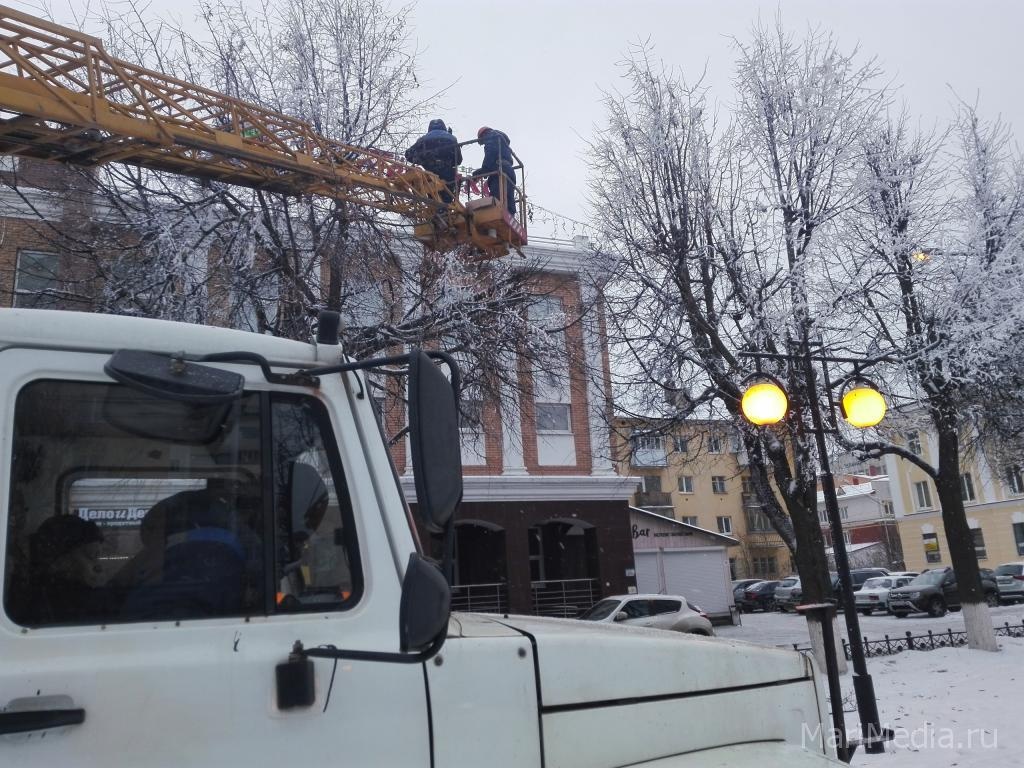 Сегодня на бульваре Чавайна в Йошкар-Оле ведутся работы по наладке новогодней иллюминации. Как рассказали ИА «МариМедиа» специалисты Йошкар-Олинской ТЭЦ, электрики устраняют небольшие неполадки. В отдельных местах, где гирлянды проходят в ветвях деревьев произошли обрывы. Несмотря на проводимые работы, бульвар уже освещён в преддверии праздника.