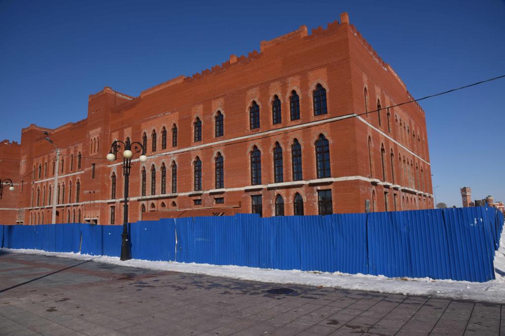 При осмотре площади Девы Марии Александр Евстифеев обратил внимание на кирпичный долгострой, который своим видом вызывает отрицательные эмоции, а также на деформированный забор из профильного листа, опоясывающий недостроенный объект.