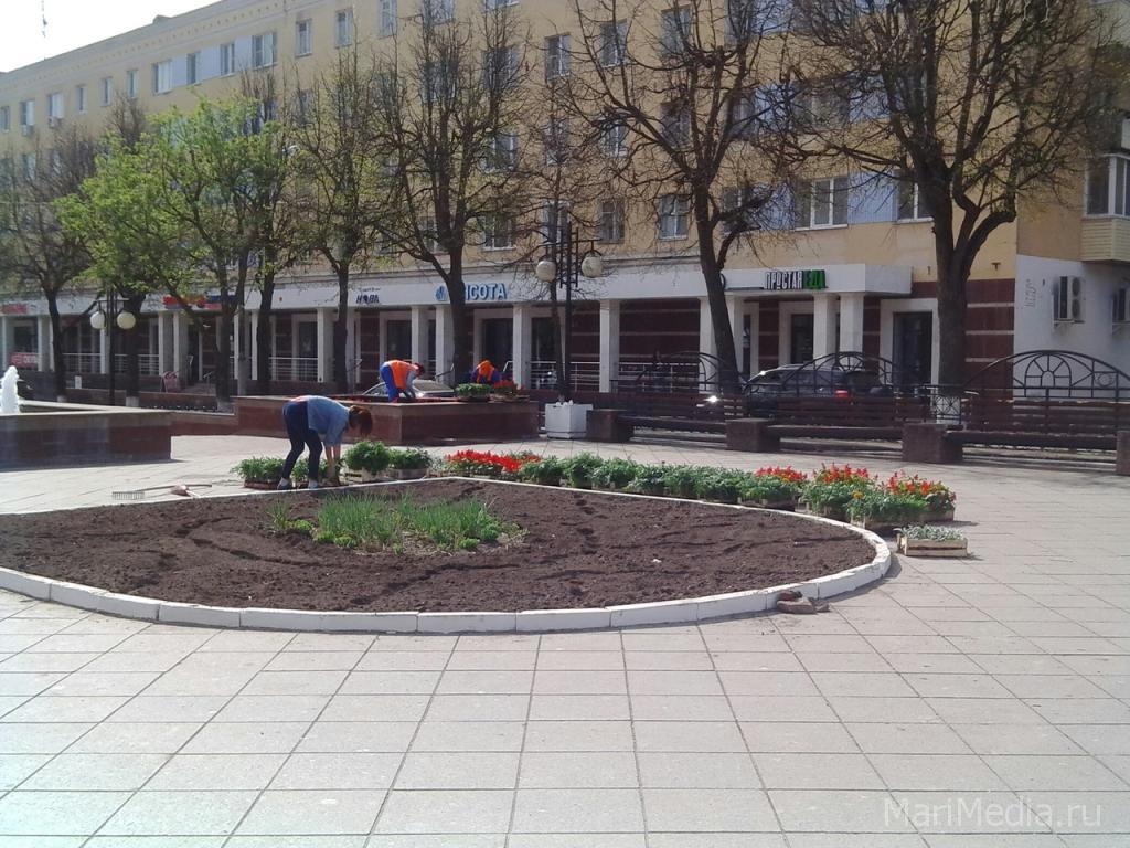 Йошкар-Ола продолжает прихорашиваться к лету. 1 мая заработали городские фонтаны. Там, где необходимо, ведётся ремонт плиточного покрытия. В центре города, у правительственных зданий, высажены цветы на клумбы.