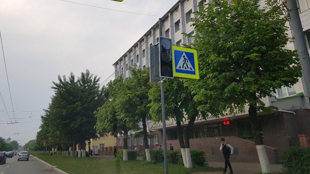 Специалисты МП «Сигнал» приступили к реконструкции светофора Т-7 на пешеходном переходе на Ленинском проспекте, 40. По словам директора предприятия Андрея Жукова, раньше светофор сигнализировал водителям жёлтым сигналом о приближении к переходу пешеходов. Сегодня установили светофоры Т-1. Это плоские светофоры с сенсорной кнопкой вызова. Напомним, аналогичный установлен в Сомбатхее на ул. Эшкинина.