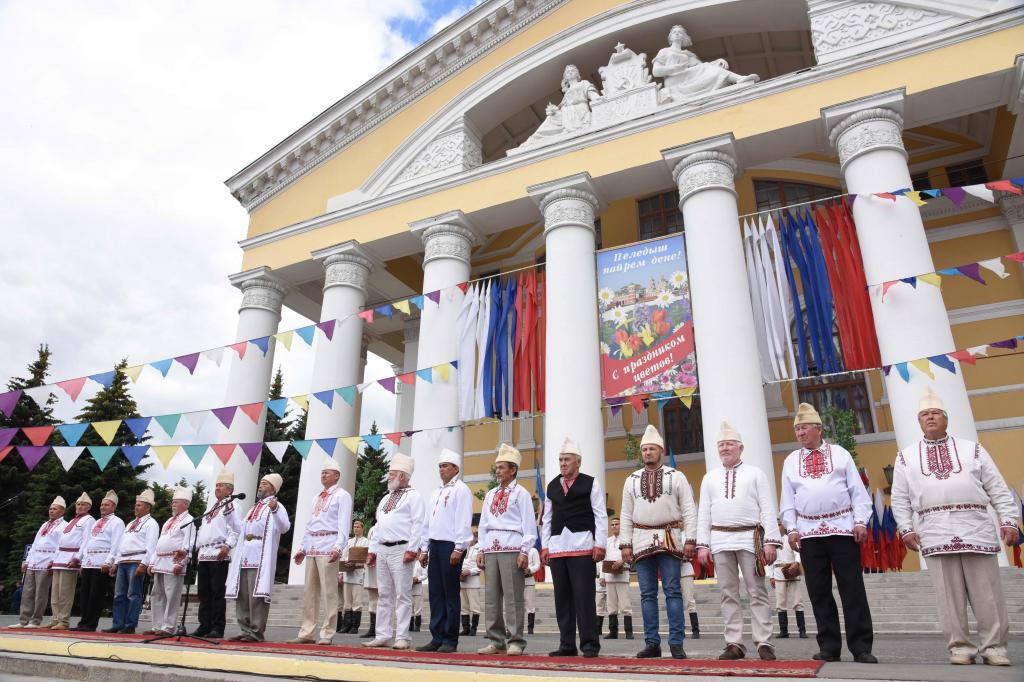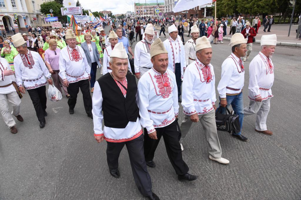 В рамках «Пеледыш пайрем» прошло праздничное шествие с участием делегаций муниципальных образований Республики Марий Эл и регионов компактного проживания народа мари, отображающее разнообразие марийского костюма с его региональными особенностями.