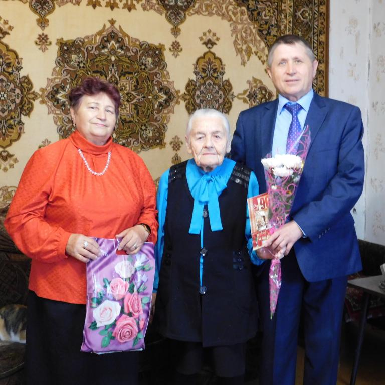 Сегодня руководитель Семёновского территориального управления Пётр Николаевич Семёнов и представитель городского Совета ветеранов Антонина Ивановна Бурлакова поздравили с 90-летним юбилеем жительницу Савино, труженицу тыла, Заслуженного учителя школы РСФСР — Мосунову Людмилу Ивановну.