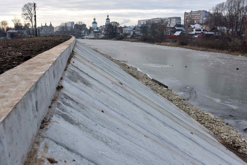 Александр Евстифеев ознакомился с работами по вводу в эксплуатацию защитной дамбы, расположенной на участке от ул. Водопроводной до ул. Красноармейской. Её строительство началось в 2017 году и проходило в два этапа в рамках Федеральной целевой программы «Развитие водохозяйственного комплекса Российской Федерации на 2012-2020 годы»: