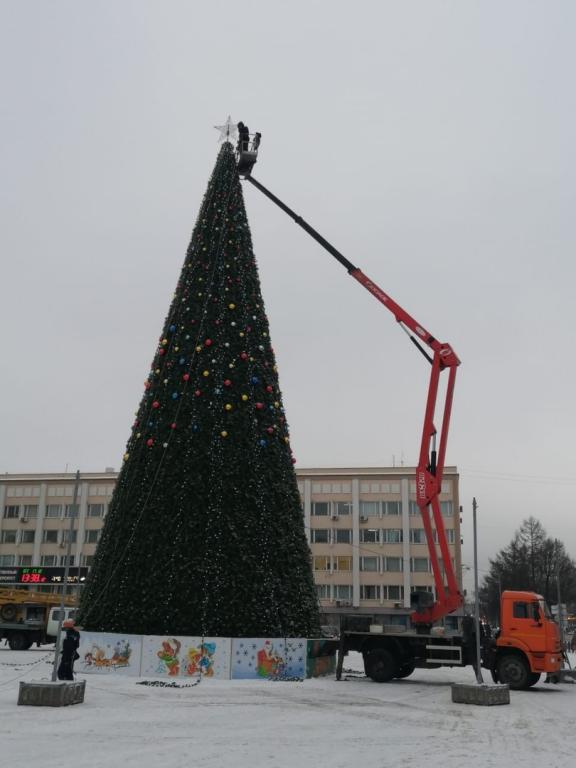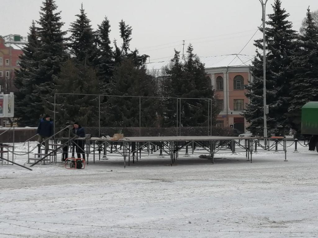 В Йошкар-Оле продолжаются работы по подготовке главной площади к новогодним праздникам. Сегодня специалисты приступили к украшению ёлки электрогирляндами, начался монтаж сцену.
