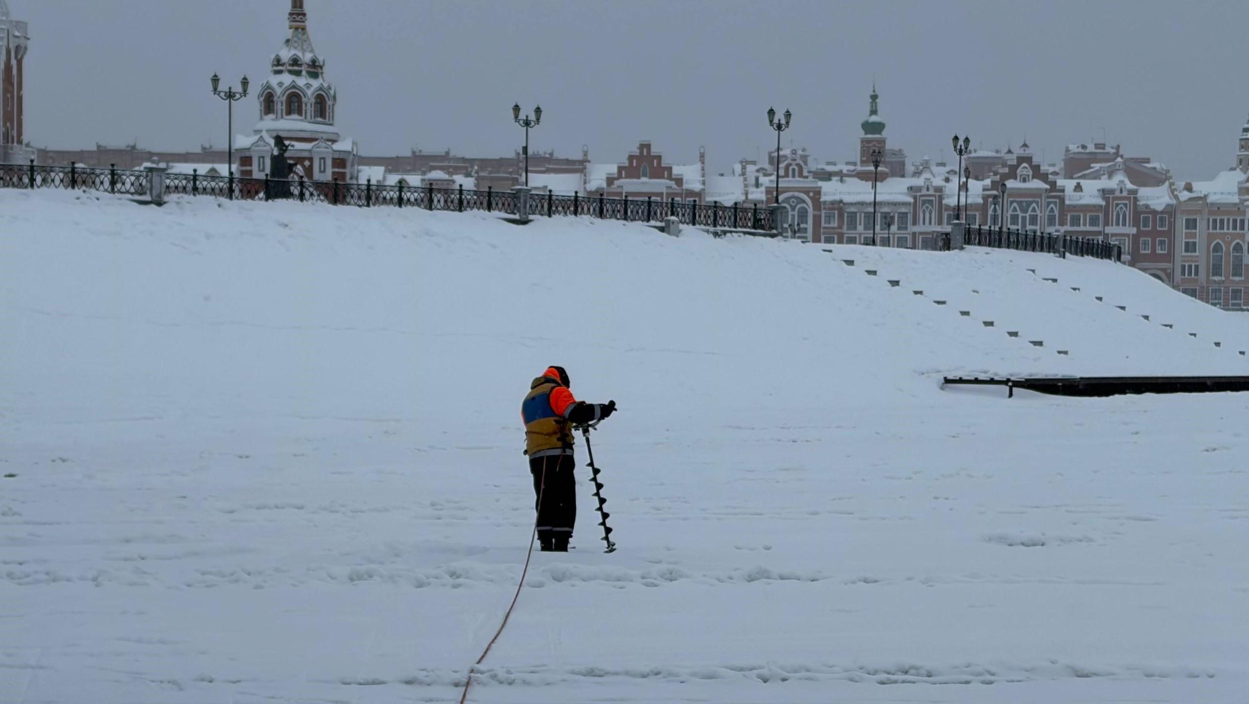 Марийские спасатели измерили толщину льда на Малой Кокшаге в Йошкар-Оле.