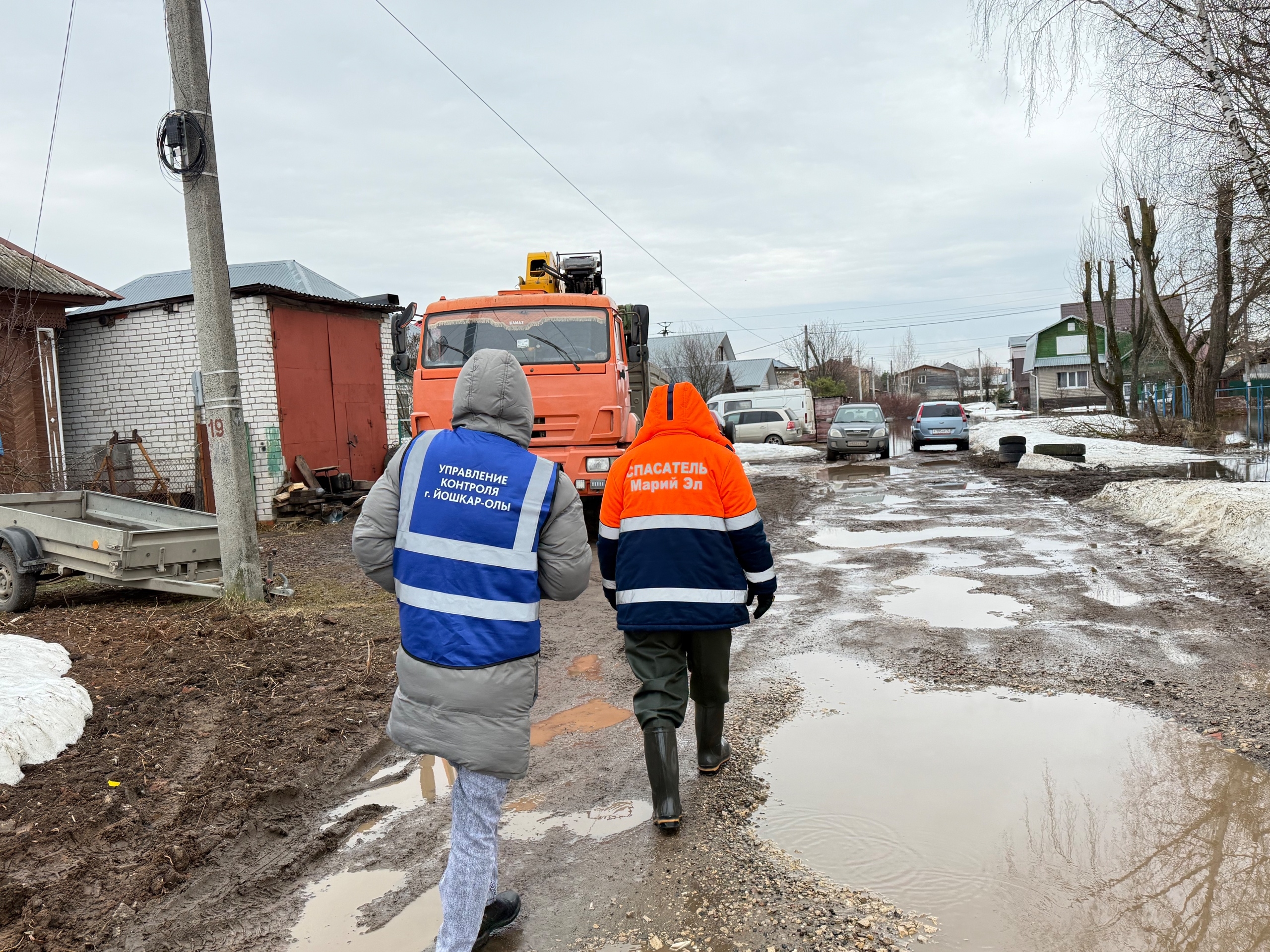 Сотрудники администрации Йошкар-Олы и спасательных служб из-за паводковой ситуации обходят частные дома за ул. Водопроводной, в районе лугов.