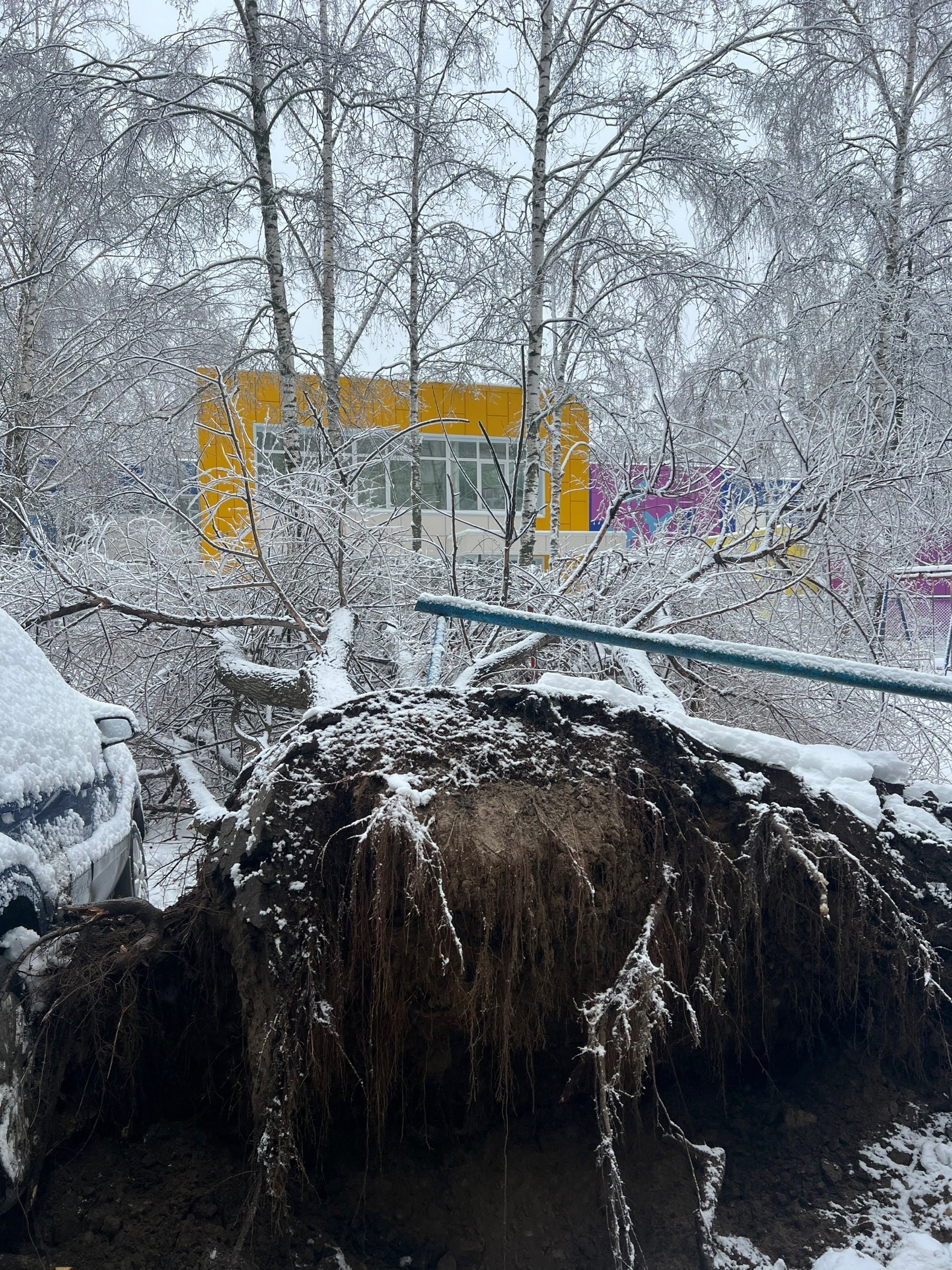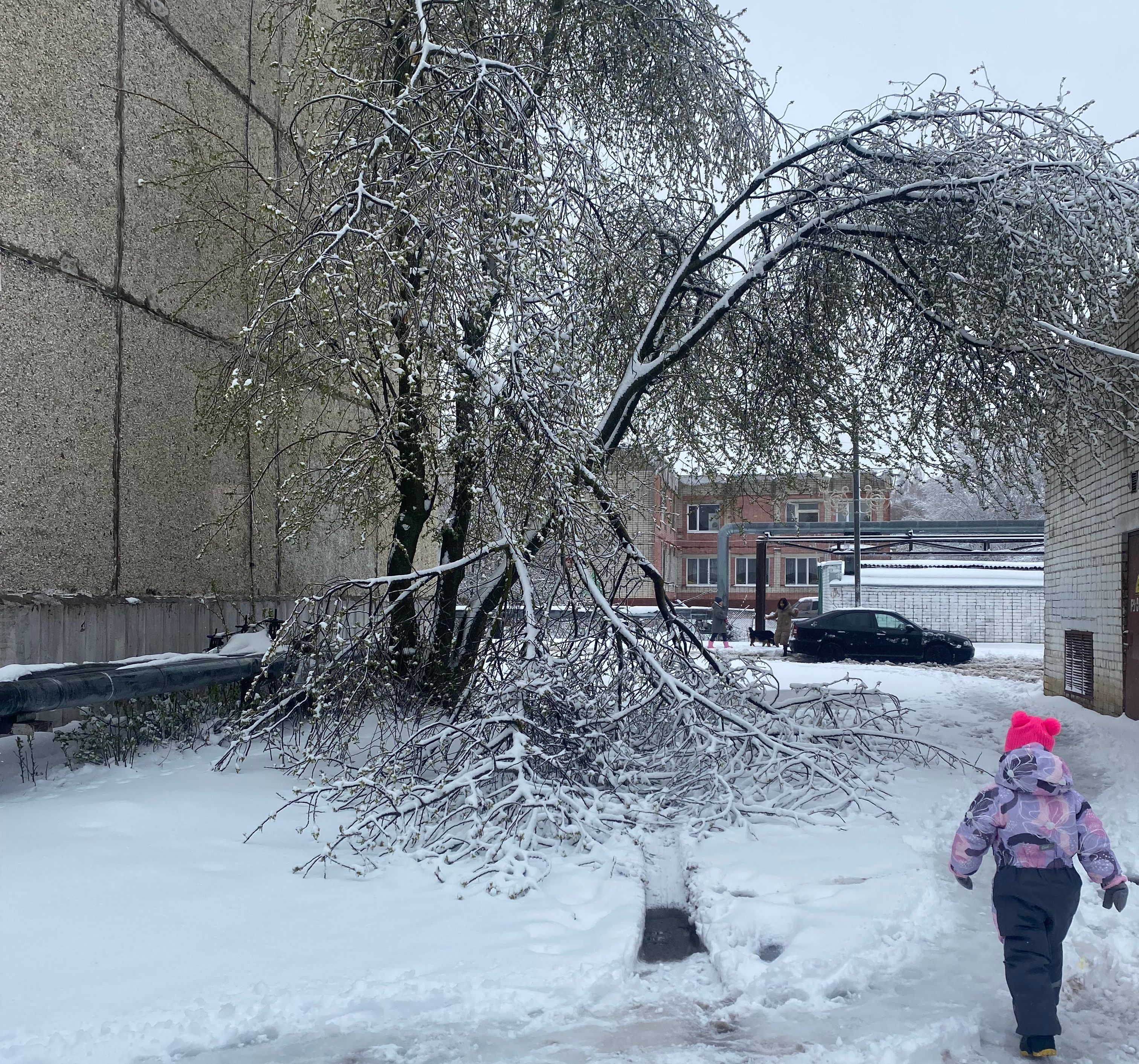 Тяжесть снега и льда. Мокрый снег и наледь создают большую нагрузку, способную согнуть или сломать ветви. После оттепели снег становится тяжёлым, а при замерзании образуется ледяная корка, усиливающая давление на ветви.