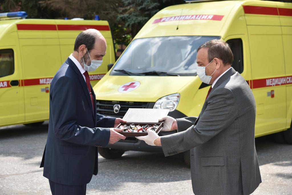 Сегодня ключи от реанимобилей главному врачу Станции скорой медицинской помощи Валерию Манукянцу вручил Александр Евстифеев.