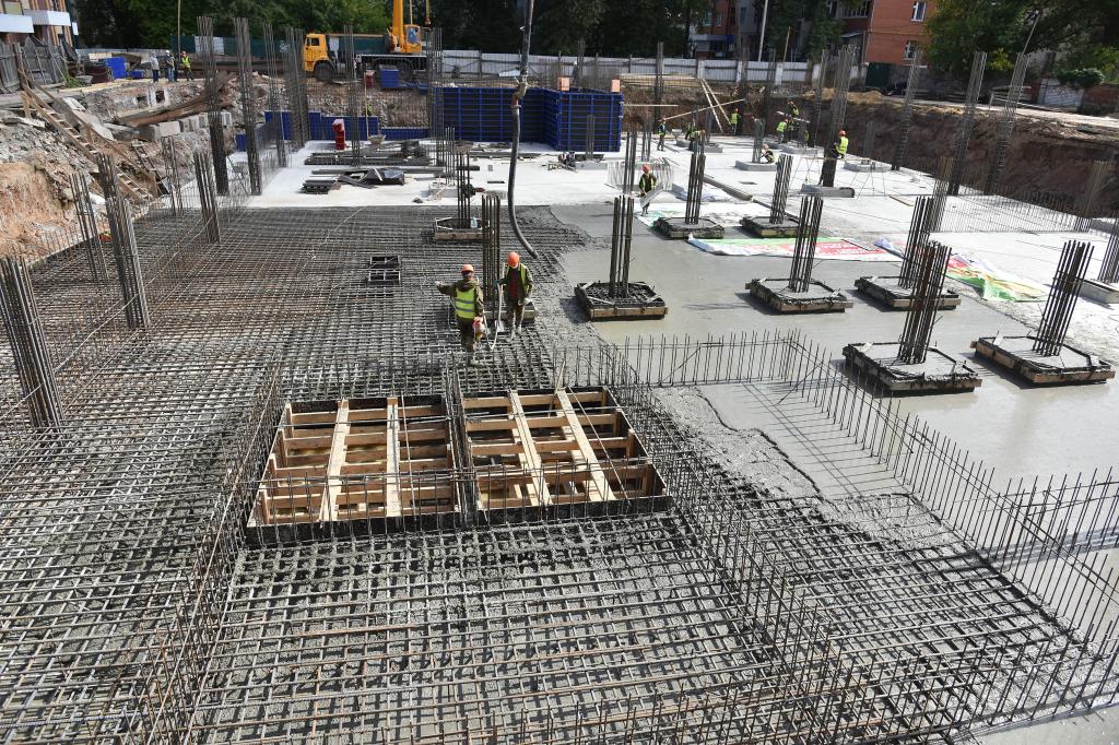 На сегодняшний день из зоны строительства на объекте перенесен водопровод, выполнен демонтаж существующей тепловой сети и устройство фундаментной плиты.