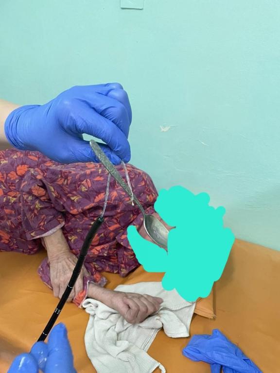 В больницу поступила бабушка, которая проглотила столовую ложку (!). Команда докторов под руководством врача высшей категории Соколова Сергея Владимировича выполнила практически ювелирную работу по спасению пациента и изъятия инородного предмета.