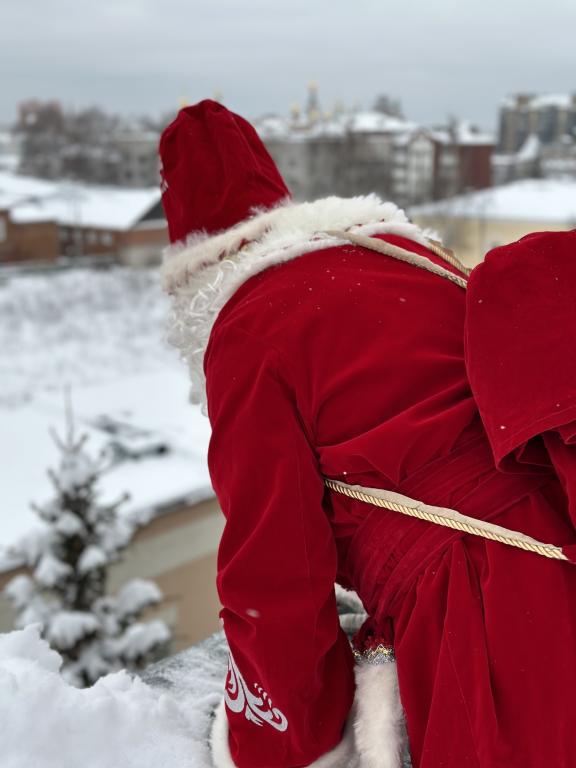 Спасатель Центрального аварийно-спасательного отряда Алексей Калинин в костюме Деда Мороза при помощи альпинистского снаряжения спустился в окно игровой комнаты, где главного волшебника уже с нетерпением ждали дети.