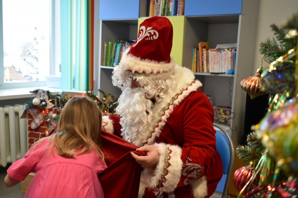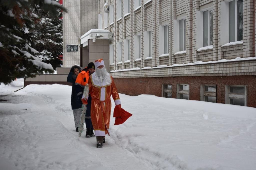 Он поздравил ребят, родителей и медицинских работников с наступающим Новым годом и пригласил их в дружный хоровод вокруг ёлки. Затем дети рассказали Деду Морозу стихотворения и получили от него игрушки и сладкие подарки.