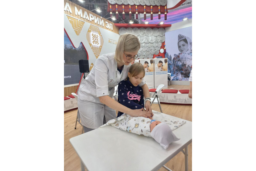На выставочной площадке врачи Сернурской центральной районной больницы обучали всех желающих грамотному пеленанию новорождённых. Мастер-класс возвращал зрителей и участников пеленания в «допамперсную» эпоху, когда родители использовали вместо современных памперсов обычные многоразовые подгузники.