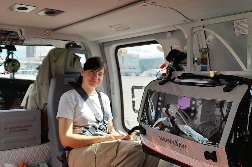 На фото бригада санитарной авиации в составе врача анестезиолога-реаниматолога Сталкиной Екатерины Владимировны и медсестры Киселевой Светланы Николаевны.