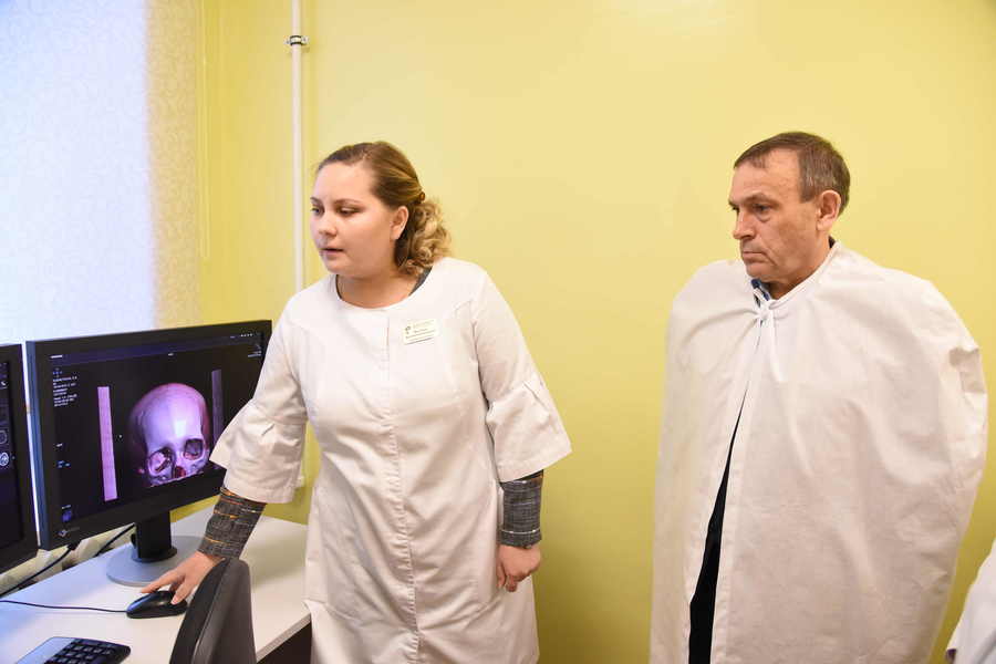 Глава Марий Эл с рабочей поездкой побывал в Козьмодемьянске. Александр Евстифеев осмотрел новый передвижной рентгеновский комплекс и созданное на базе межрайонной больницы первичное сосудистое отделение.