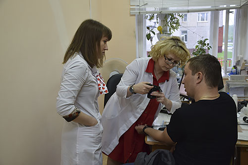 Осмотр проводили 10 врачей с помощью специального аппарата дерматоскопа, который позволяет увидеть структуры кожи в глубине, обнаружить ранние признаки рака, сообщили в республиканском Минздраве.
