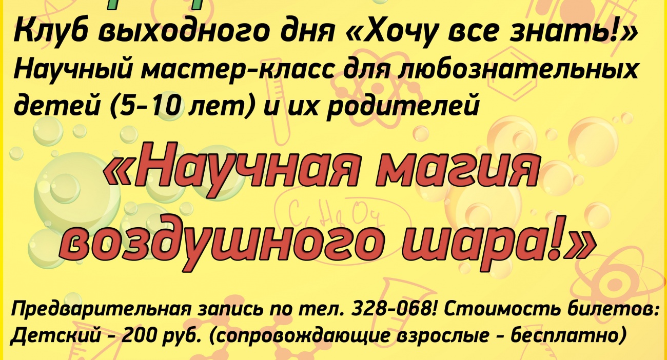 "Клуб выходного дня "Хочу все знать!" научный мастер-класс для любознательных детей (5-10 лет) и их родителей.