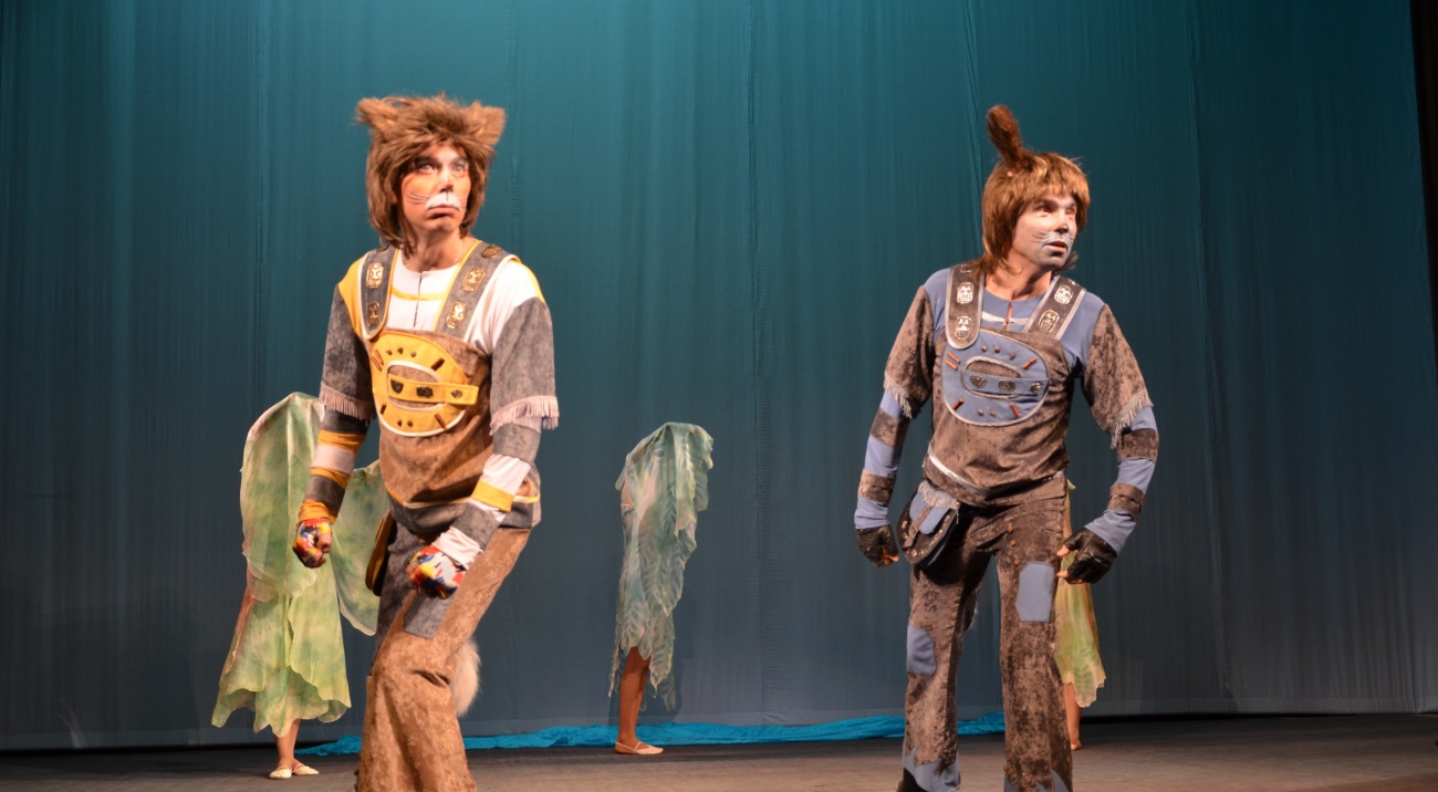 Пьеса «Алвар и тень» написана известным марийским драматургом Миклаем Рыбаковым по одноименной сказке финской писательницы Леены Лаулаяйнен. Это философская сказка о зайчонке по имени Алвар, который по-детски мечтает о славе - как о положении, дающем свободу в выборе поступков. Но эта дорога не ведет его к заветной мечте, не делает его свободным от других. И лес, живой лес, выступивший в спектакле как один из главных действующих оппонентов Алвара, пытается предостеречь главного героя от тех поступков, за которые в финале ему будет очень стыдно.