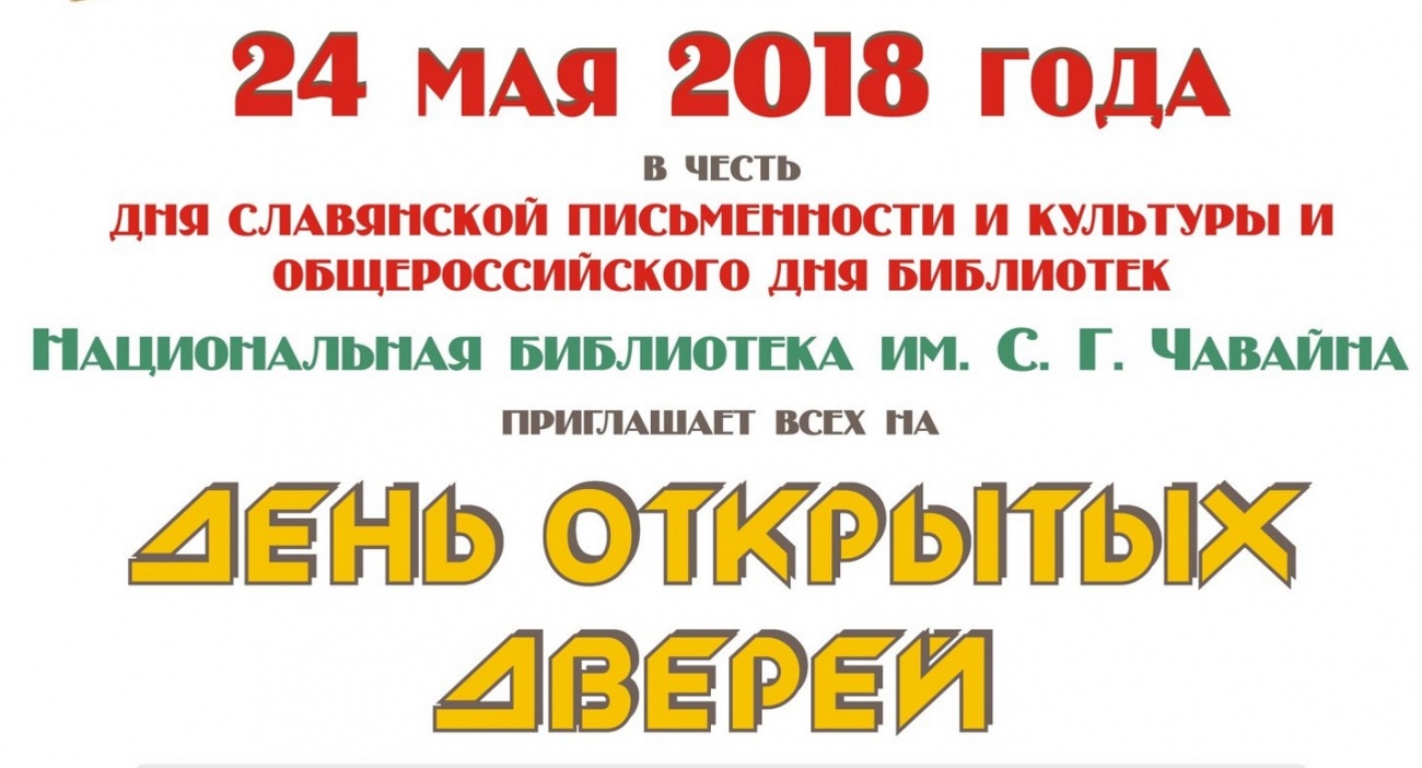 24 мая в честь Дня славянской письменности и культуры и Общероссийского дня библиотек Национальная библиотека им. С. Г. Чавайна проводит День открытых дверей. В праздничном мероприятии примут участие министр культуры, печати и по делам национальностей РМЭ Константин Анатольевич Иванов, представители Государственного собрания Республики Марий Эл, руководители и сотрудники библиотек республики.