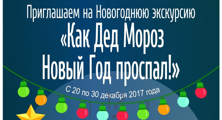 Новогодняя экскурсия для детей «Как Дед Мороз Новый Год проспал»! В программе: интерактивное представление, игры, конкурсы и танцы, квест подарят праздничное, волшебное настроение всем участникам.