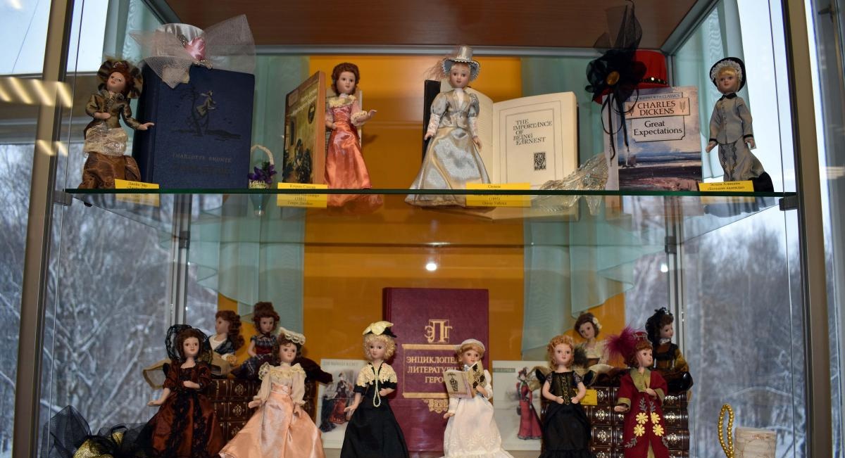 Это коллекция фарфоровых кукол ростом около 20 см в костюмах героинь романтической литературы (большая часть произведений XIX века, викторианская эпоха). Всего на выставке 32 куклы.