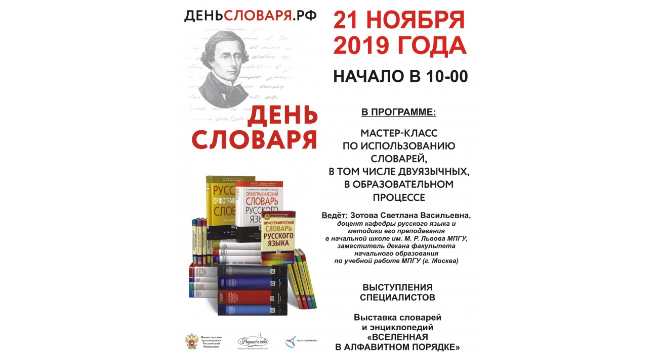 В рамках Всероссийского Дня словаря 21 ноября в 10 часов в Национальной библиотеке имени С. Г. Чавайна состоится мастер-класс по использованию словарей, в том числе двуязычных, в образовательном процессе и проведение выставочных мероприятий.