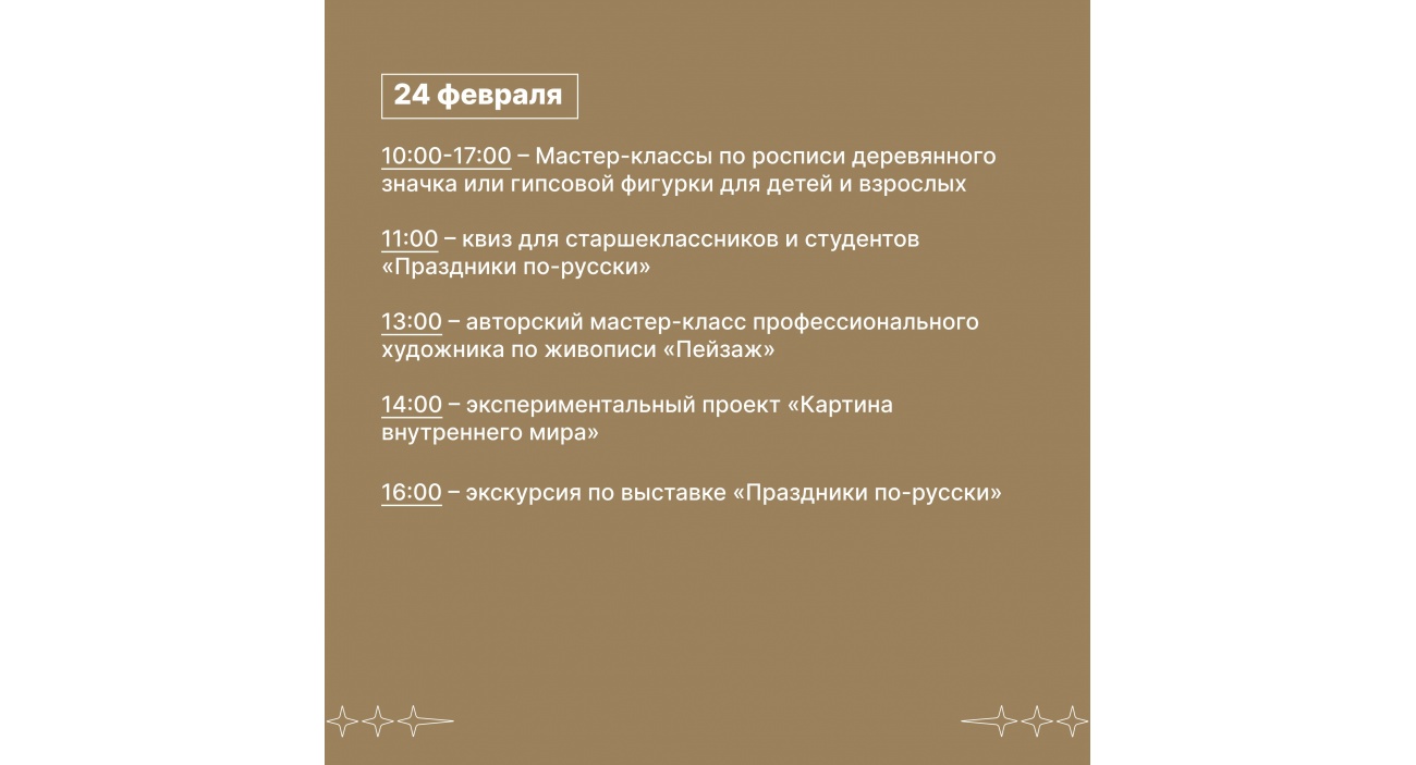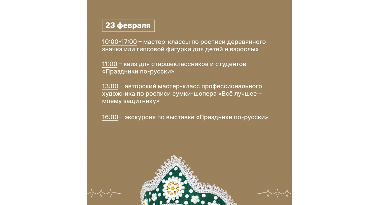 11.00 — КВИЗ по выставке «Праздники по-русски» (16+).