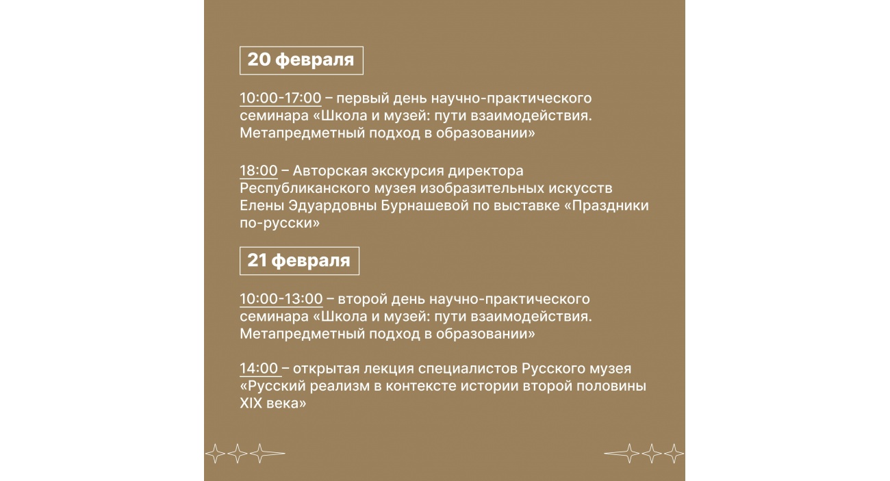 10.00 — 17.00 — Научно-практический семинар «Школа и музей: пути взаимодействия. Метапредметный подход в образовании»