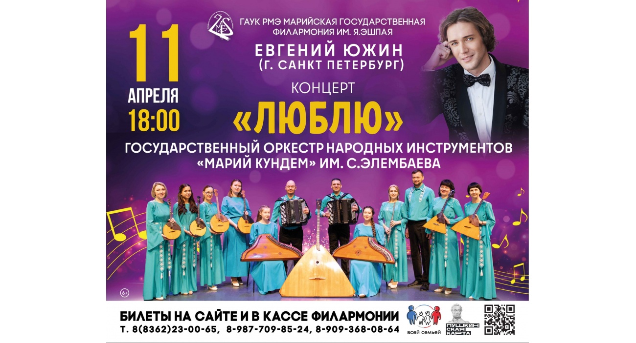 Концерт «Люблю», Евгений Южин (г. Санкт Петербург) и Государственный оркестр народных инструментов «Марий кундем» им. С.Элембаева.
