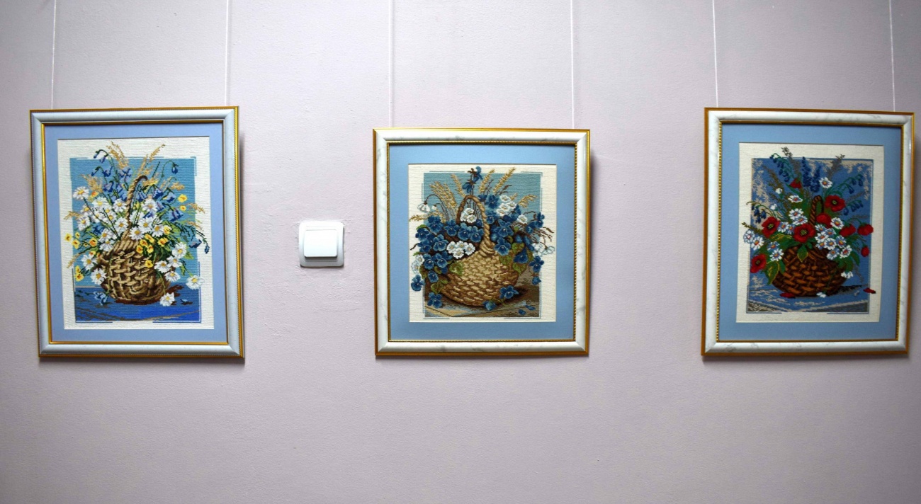 Галина Михайловна, читательница библиотеки, активная участница проекта «Новый старт. 55+», увлекается многими видами рукоделия. Особенно привлекает её вышивка крестиком — в этой технике она создает великолепные работы, некоторые из которых предоставлены на выставке.
