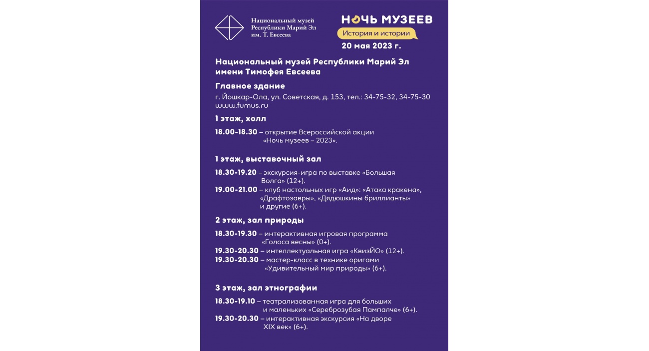 18.00–18.30 — открытие Всероссийской акции «Ночь музеев — 2023».