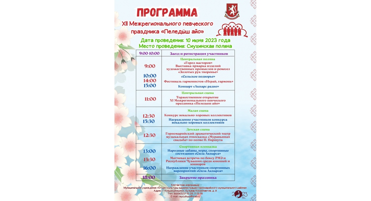 10 Ииюня состоится XII Межрегиональный певческий праздник «Пеледӹш айо» («Праздник цветов»).