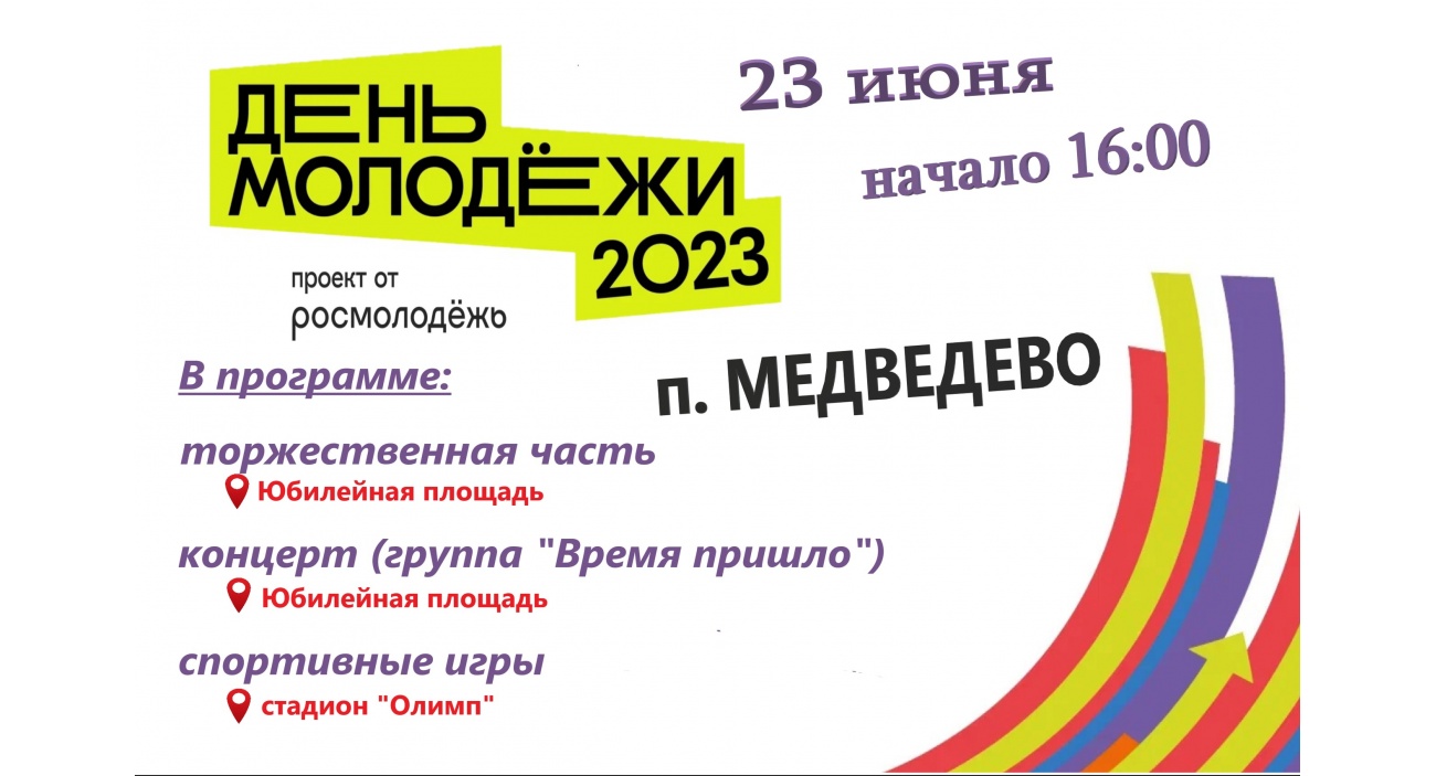 23 июня в рамках Дня молодежи в п. Медведево состоится награждение победителей конкурса на грант главы администрации Медведевского района, праздничный концерт и спортивные соревнования.