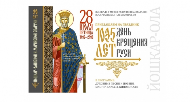 Также в этот день, в рамках празднования 1035-летия Крещения Руси для вас будут проведены просветительские экскурсии «Йошкар-Ола православная» (11.00 час., 14.00 час., 17.00 час.Набережная реки М.Кокшага).